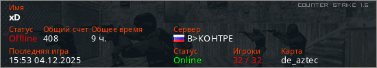 Играет на Counter Strike 1.6 сервере. Страна: РоссияПервый раз замечен 06:18 05.10.2021