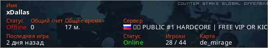 Играет на Counter Strike Global Offensive сервере. Страна: РоссияПервый раз замечен 18:54 27.03.2026