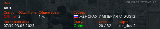 Играет на Counter Strike 1.6 сервере. Страна: РоссияПервый раз замечен 08:14 28.10.2022