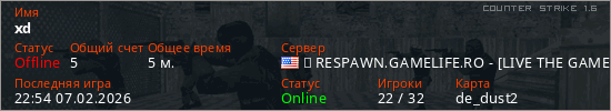 Играет на Counter Strike 1.6 сервере. Страна: СШАПервый раз замечен 22:52 07.02.2026