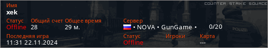 Играет на Counter Strike Source сервере. Страна: РоссияПервый раз замечен 10:15 19.11.2024