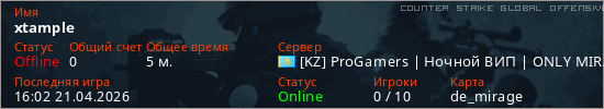 Играет на Counter Strike Global Offensive сервере. Страна: КазахстанПервый раз замечен 15:43 21.04.2026