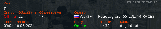 Играет на Counter Strike 1.6 сервере. Страна: РоссияПервый раз замечен 12:38 25.12.2020