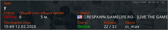 Играет на Counter Strike 1.6 сервере. Страна: СШАПервый раз замечен 15:47 12.02.2026