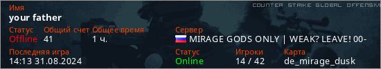 Играет на Counter Strike Global Offensive сервере. Страна: РоссияПервый раз замечен 16:33 03.08.2024