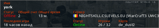 Последний раз был в сети 16 часов назад Игрок с таким ником замечен на 9 серверах