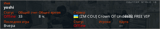 Играет на Counter Strike 1.6 сервере. Страна: УкраинаПервый раз замечен 04:01 21.10.2025