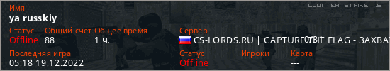 Играет на Counter Strike 1.6 сервере. Страна: РоссияПервый раз замечен 08:38 17.12.2022