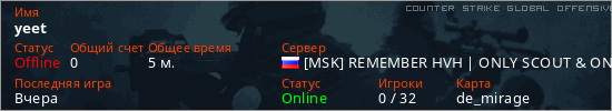 Играет на Counter Strike Global Offensive сервере. Страна: РоссияПервый раз замечен 19:48 14.12.2025