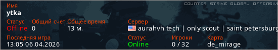 Играет на Counter Strike Global Offensive сервере. Страна: СШАПервый раз замечен 15:05 04.04.2026