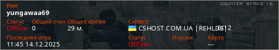 Играет на Counter Strike 1.6 сервере. Страна: УкраинаПервый раз замечен 19:33 07.12.2025