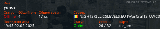 Последний раз был в сети 19:45 02.02.2025 Игрок с таким ником замечен на 20 серверах
