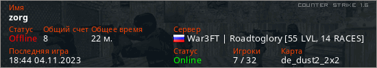 Играет на Counter Strike 1.6 сервере. Страна: РоссияПервый раз замечен 12:36 21.10.2021