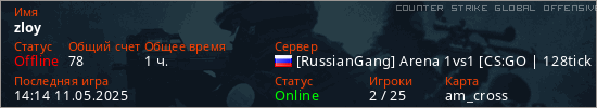 Играет на Counter Strike Global Offensive сервере. Страна: РоссияПервый раз замечен 16:30 09.10.2024