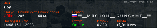 Играет на Counter Strike 1.6 сервере. Страна: РоссияПервый раз замечен 17:49 29.04.2022