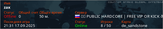 Играет на Counter Strike Global Offensive сервере. Страна: РоссияПервый раз замечен 10:27 04.09.2025