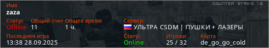 Последний раз был в сети 13:38 28.09.2025 Игрок с таким ником замечен на 40 серверах