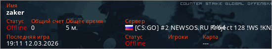Играет на Counter Strike Global Offensive сервере. Страна: РоссияПервый раз замечен 19:09 12.03.2026