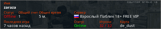 Последний раз был в сети 6 часов назад Игрок с таким ником замечен на 18 серверах