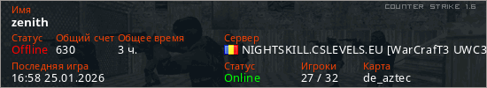 Играет на Counter Strike 1.6 сервере. Страна: РумынияПервый раз замечен 21:26 02.01.2026