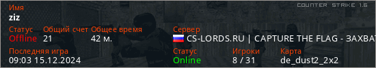 Играет на Counter Strike 1.6 сервере. Страна: РоссияПервый раз замечен 12:10 21.10.2023