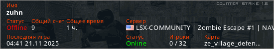 Играет на Counter Strike 1.6 сервере. Страна: СШАПервый раз замечен 05:18 13.10.2025