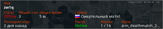 Играет на Counter Strike 1.6 сервере. Страна: РоссияПервый раз замечен 13:45 22.12.2025
