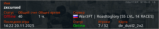 Играет на Counter Strike 1.6 сервере. Страна: РоссияПервый раз замечен 22:38 17.02.2021