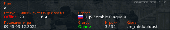Играет на Counter Strike 1.6 сервере. Страна: РоссияПервый раз замечен 10:18 21.11.2021