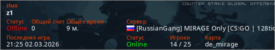 Играет на Counter Strike Global Offensive сервере. Страна: РоссияПервый раз замечен 20:24 28.02.2026