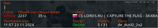 Играет на Counter Strike 1.6 сервере. Страна: РоссияПервый раз замечен 23:56 18.06.2021