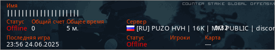 Играет на Counter Strike Global Offensive сервере. Страна: РоссияПервый раз замечен 23:40 24.06.2025