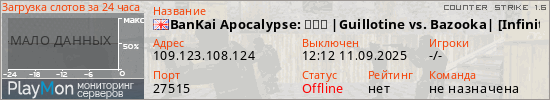 BanKai Apocalypse: ★★★ |Guillotine vs. Bazooka| [Infinite Targets] ★★★ представлен в виде сервера кс 1.6. Из всех имеющихся на сайте модификаций игровых серверов, вам может понравиться Hide'n'Seek серверы cs. А для быстрой навигации по всем меткам - используйте главную страницу игры Counter Strike 1.6.