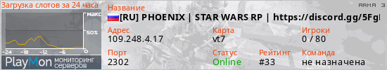 [RU] PHOENIX | STAR WARS RP | https://discord.gg/5FgEANx7Yu представлен в виде сервера арма 3. Из всех имеющихся на сайте модификаций игровых серверов, вам может понравиться Wasteland серверы arma3. А для быстрой навигации по всем меткам - используйте главную страницу игры ARMA 3.