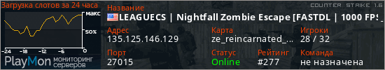 LEAGUECS | Nightfall Zombie Escape [FASTDL | 1000 FPS] представлен в виде сервера кс 1.6. Из всех имеющихся на сайте модификаций игровых серверов, наша система поставила метку Zombie сервера cs. В нашем мониторинге игровых серверов вы так же можете найти быструю навигацию по всем меткам - используйте главную страницу игры Counter Strike 1.6.
