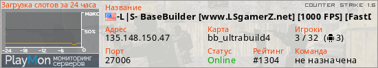 -L|S- BaseBuilder [www.LSgamerZ.net] [1000 FPS] [FastDL] [NEW] представлен в виде сервера кс 1.6. Из всех имеющихся на сайте модификаций игровых серверов, вам может понравиться Knife серверы cs. А для быстрой навигации по всем меткам - используйте главную страницу игры Counter Strike 1.6.