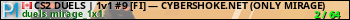 CS2 DUELS | 1v1 #9 [FI] — CYBERSHOKE.NET (ONLY MIRAGE) представлен в виде сервера кс 2. Из всех имеющихся на сайте модификаций игровых серверов, наша система поставила метку 1vs1 сервера cs2. В нашем мониторинге игровых серверов вы так же можете найти быструю навигацию по всем меткам - используйте главную страницу игры Counter Strike 2.
