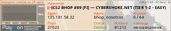 CS2 BHOP #89 [FI] — CYBERSHOKE.NET (TIER 1-2 - EASY) представлен в виде сервера кс 2. Из всех имеющихся на сайте модификаций игровых серверов, вам может понравиться Knife серверы cs2. А для быстрой навигации по всем меткам - используйте главную страницу игры Counter Strike 2.