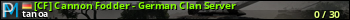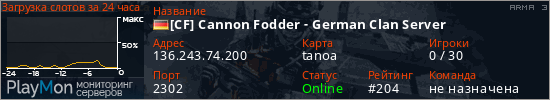 [CF] Cannon Fodder - German Clan Server представлен в виде сервера арма 3. Из всех имеющихся на сайте модификаций игровых серверов, вам может понравиться Wasteland серверы arma3. А для быстрой навигации по всем меткам - используйте главную страницу игры ARMA 3.