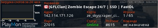 [GFLClan] Zombie Escape 24/7 | SSD | FastDL представлен в виде сервера ксс. Из всех имеющихся на сайте модификаций игровых серверов, наша система поставила метку Zombie сервера css. В нашем мониторинге игровых серверов вы так же можете найти быструю навигацию по всем меткам - используйте главную страницу игры Counter Strike Source.