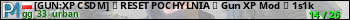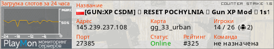 [GUN:XP CSDM] ★ RESET POCHYLNIA ★ Gun XP Mod ★ 1s1k представлен в виде сервера кс 1.6. Из всех имеющихся на сайте модификаций игровых серверов, наша система поставила метку DeathMatch сервера cs. В нашем мониторинге игровых серверов вы так же можете найти где поиграть на GunGame сервере кс 1.6.