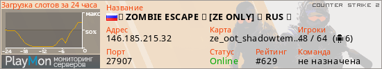 ☣ ZOMBIE ESCAPE ☣ [ZE ONLY] ☣ RUS ☣ представлен в виде сервера кс 2. Из всех имеющихся на сайте модификаций игровых серверов, наша система поставила метку Zombie сервера cs2. В нашем мониторинге игровых серверов вы так же можете найти быструю навигацию по всем меткам - используйте главную страницу игры Counter Strike 2.