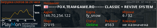 -------FOX.TEAMGAME.RO------- CLASSIC + REVIVE SYSTEM | VIP FREE | представлен в виде сервера кс 1.6. Из всех имеющихся на сайте модификаций игровых серверов, наша система поставила метку Classic сервера cs. В нашем мониторинге игровых серверов вы так же можете найти быструю навигацию по всем меткам - используйте главную страницу игры Counter Strike 1.6.