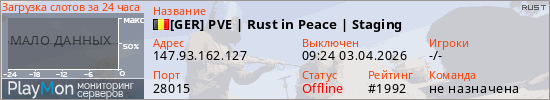 ID: 82042Ссылка: https://playmon.ru/server/147.93.162.127:28015