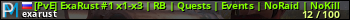[PvE] ExaRust #1 x1-x3 | RB | Quests | Events | NoRaid | NoKill представлен в виде сервера раст. Из всех имеющихся на сайте модификаций игровых серверов, вам может понравиться NoDecay серверы rust. А для быстрой навигации по всем меткам - используйте главную страницу игры Rust.