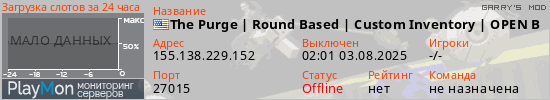 Общая информация ID: 62762 Ссылка: https://playmon.ru/server/155.138.229.152:27015 Адрес: 155.138.229.152:27015 Игроки: 0/40 Статус: Выключен Владелец: Не определён