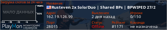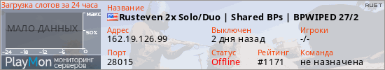 ID: 81957Ссылка: https://playmon.ru/server/162.19.126.99:28015