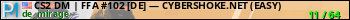 CS2 DM | FFA #102 [DE] — CYBERSHOKE.NET (EASY) представлен в виде сервера кс 2. Из всех имеющихся на сайте модификаций игровых серверов, наша система поставила метку DeathMatch сервера cs2. В нашем мониторинге игровых серверов вы так же можете найти где поиграть на FFA сервере кс 2.
