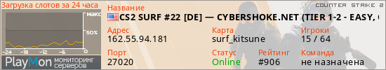 CS2 SURF #22 [DE] — CYBERSHOKE.NET (TIER 1-2 - EASY, ONLY KIT представлен в виде сервера кс 2. Из всех имеющихся на сайте модификаций игровых серверов, наша система поставила метку Surf сервера cs2. В нашем мониторинге игровых серверов вы так же можете найти быструю навигацию по всем меткам - используйте главную страницу игры Counter Strike 2.