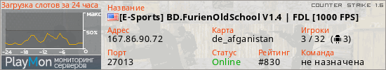 [E-Sports] BD.FurienOldSchool V1.4 | FDL [1000 FPS] представлен в виде сервера кс 1.6. Из всех имеющихся на сайте модификаций игровых серверов, наша система поставила метку Furien Mod сервера cs. В нашем мониторинге игровых серверов вы так же можете найти быструю навигацию по всем меткам - используйте главную страницу игры Counter Strike 1.6.